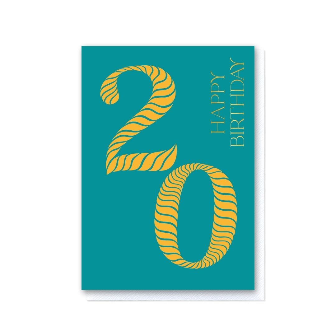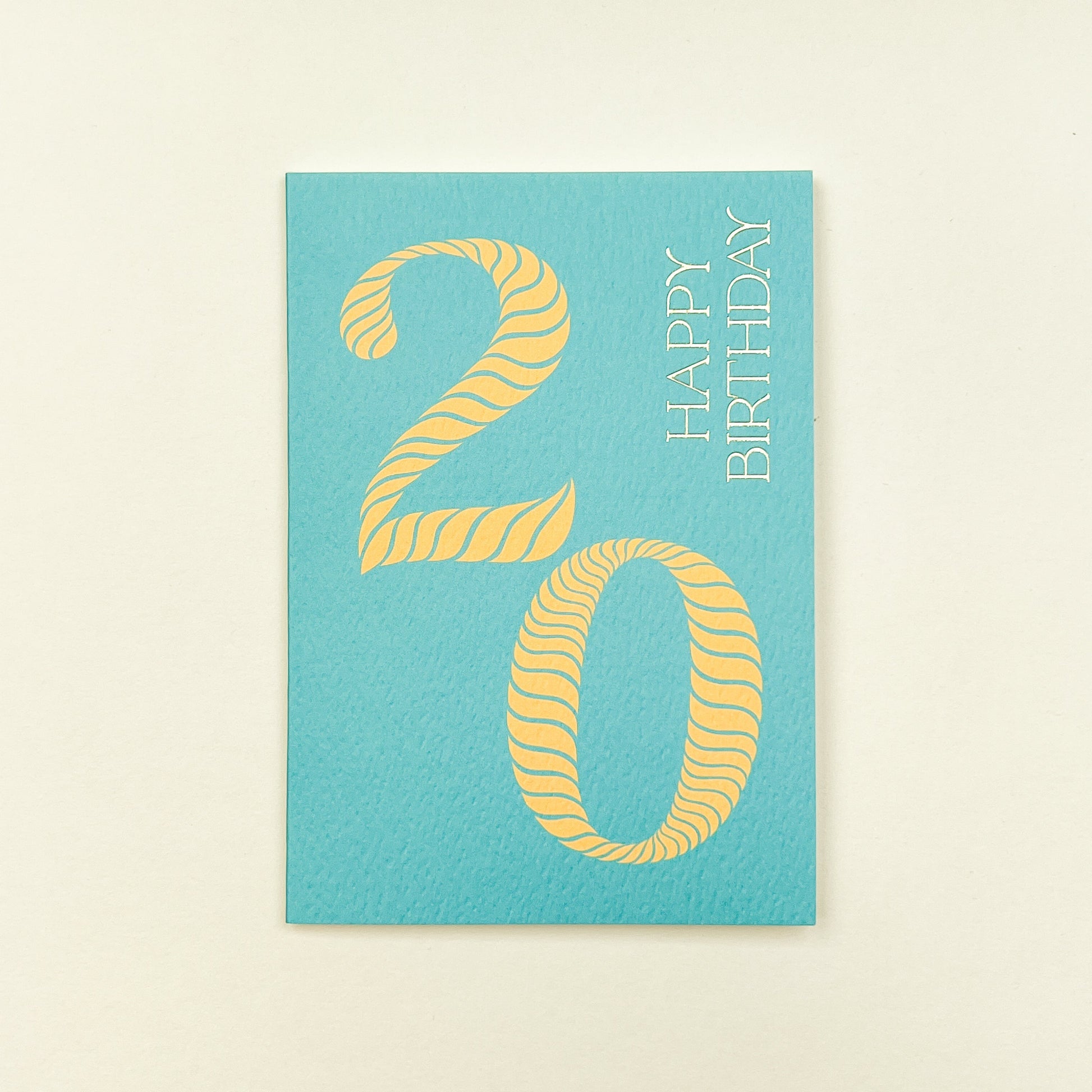 Celebrate a milestone birthday in style with our vibrant "Birthday Stripes 20th Birthday" greeting card. Featuring a cheerful striped-number design adorned with gold foil typography, this card is the perfect way to commemorate reaching the age of twenty. Measuring 148x105mm, it includes a premium white envelope with a refined, tactile finish, delivering your warmest wishes with elegance.