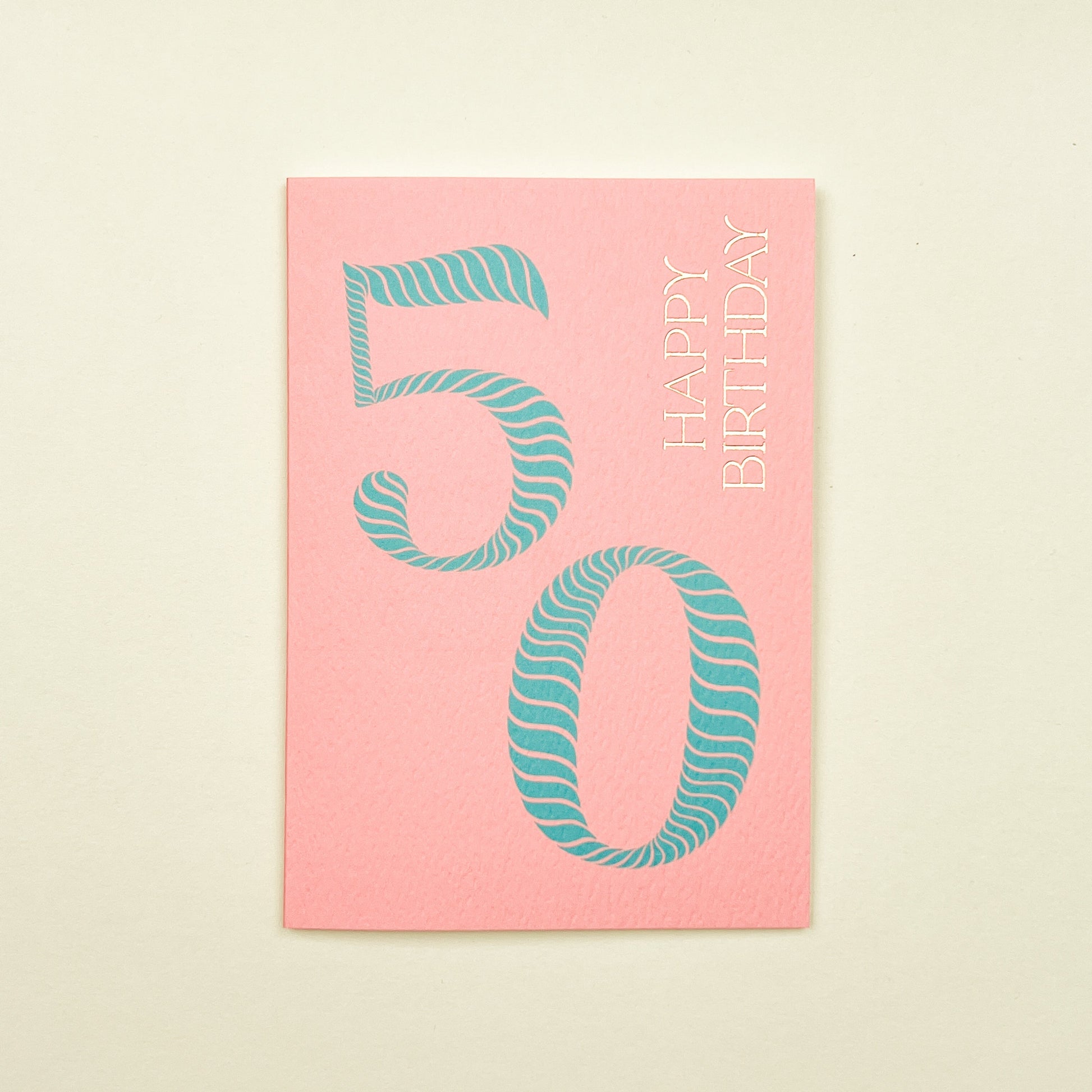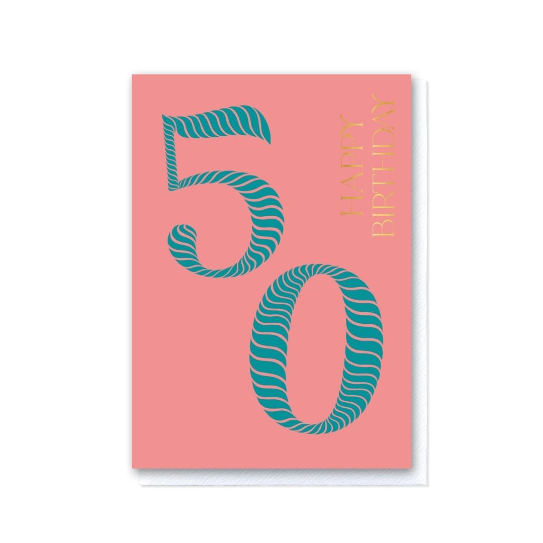 Celebrate a milestone birthday in style with our vibrant 'Birthday Stripes 50th Birthday' greeting card. Featuring a cheerful striped-number design adorned with gold foil typography, this card is the perfect way to commemorate reaching the age of fifty. Measuring 148x105mm, it includes a premium white envelope with a refined, tactile finish, delivering your warmest wishes with elegance.