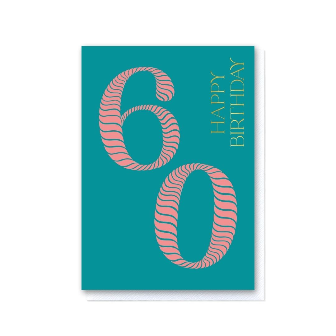 Celebrate a milestone birthday in style with our vibrant 'Birthday Stripes 60th Birthday' greeting card. Featuring a cheerful striped-number design adorned with gold foil typography, this card is the perfect way to commemorate reaching the age of sixty. Measuring 148x105mm, it includes a premium white envelope with a refined, tactile finish, delivering your warmest wishes with elegance.
