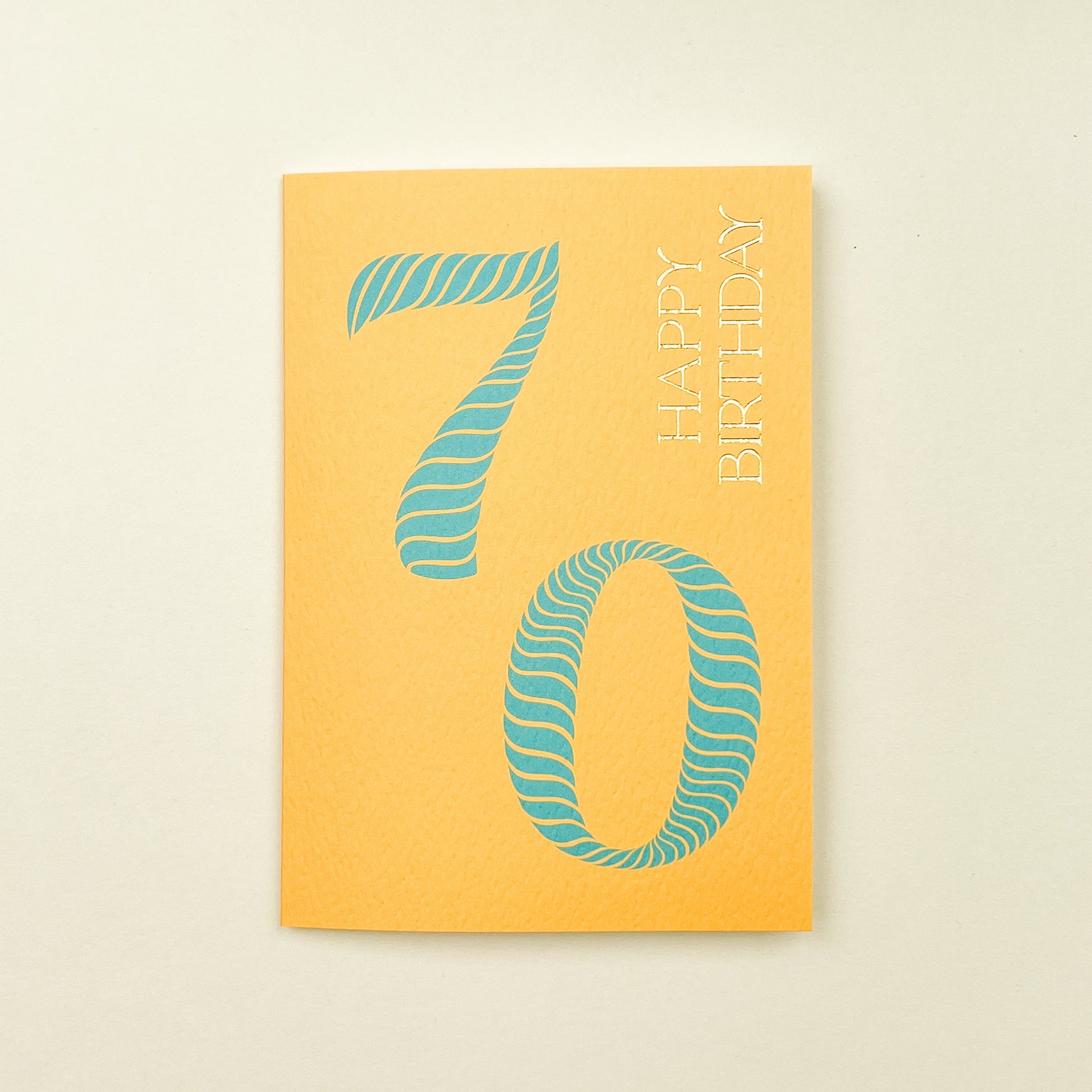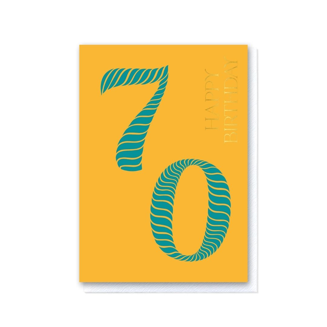 Celebrate a milestone birthday in style with our vibrant 'Birthday Stripes 70th Birthday' greeting card. Featuring a cheerful striped-number design adorned with gold foil typography, this card is the perfect way to commemorate reaching the age of seventy. Measuring 148x105mm, it includes a premium white envelope with a refined, tactile finish, delivering your warmest wishes with elegance.