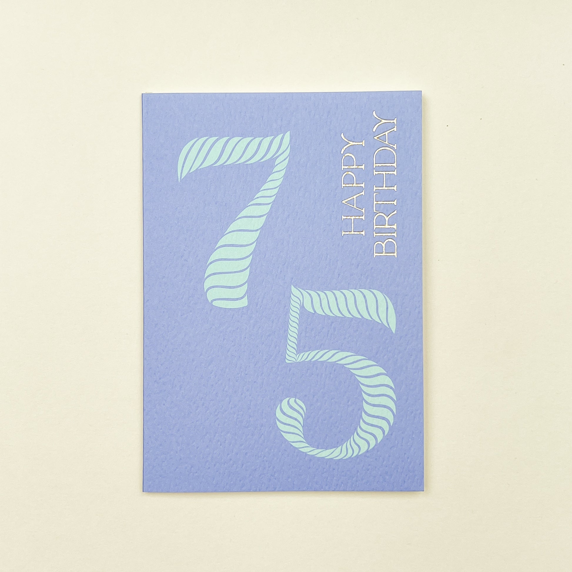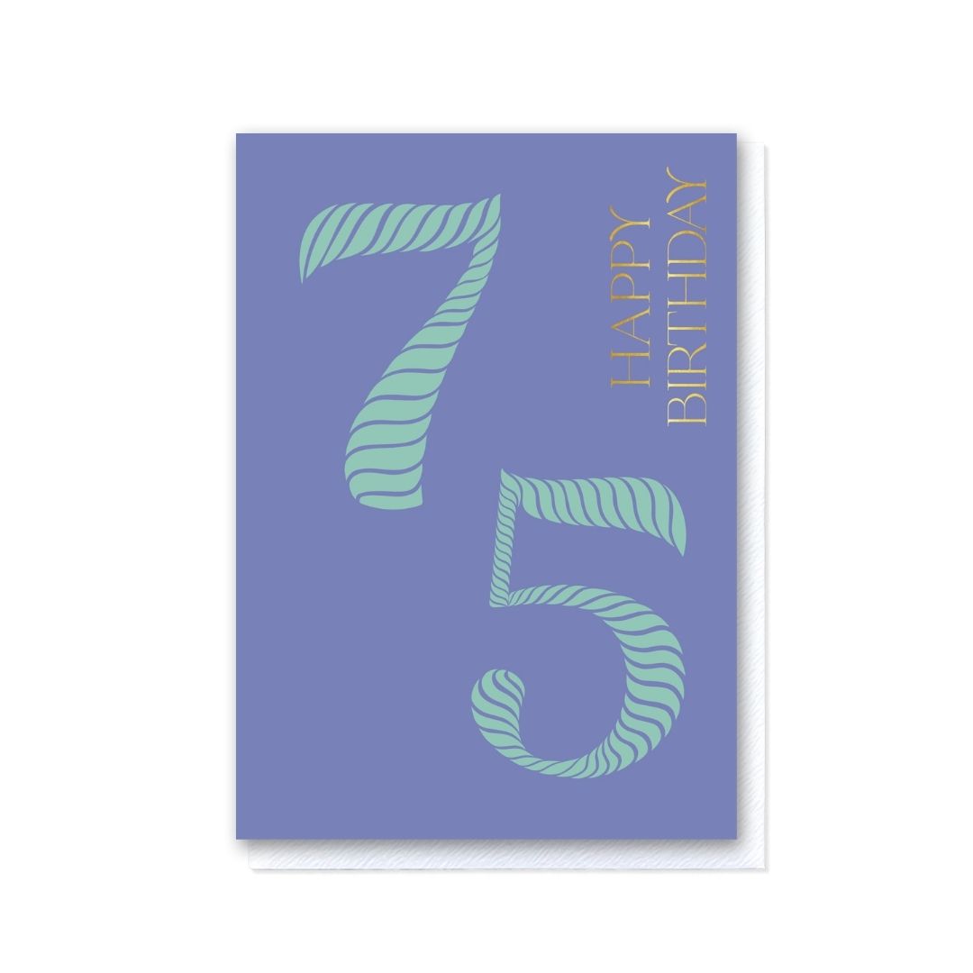 Celebrate a milestone birthday in style with our vibrant 'Birthday Stripes 75th Birthday' greeting card. Featuring a cheerful striped-number design adorned with gold foil typography, this card is the perfect way to commemorate reaching the age of seventy-five. Measuring 148x105mm, it includes a premium white envelope with a refined, tactile finish, delivering your warmest wishes with elegance.
