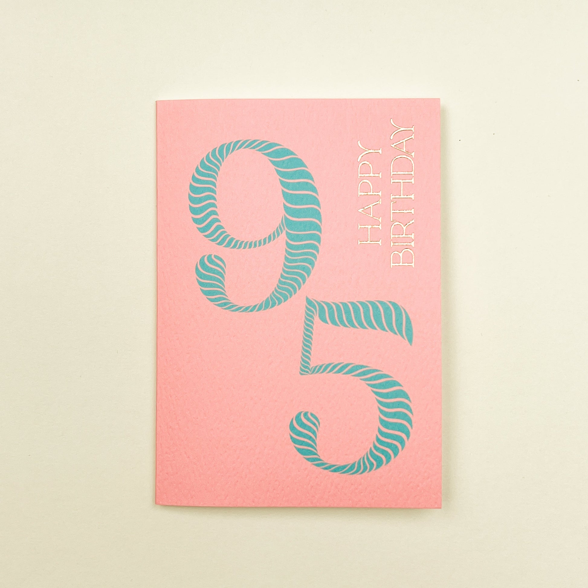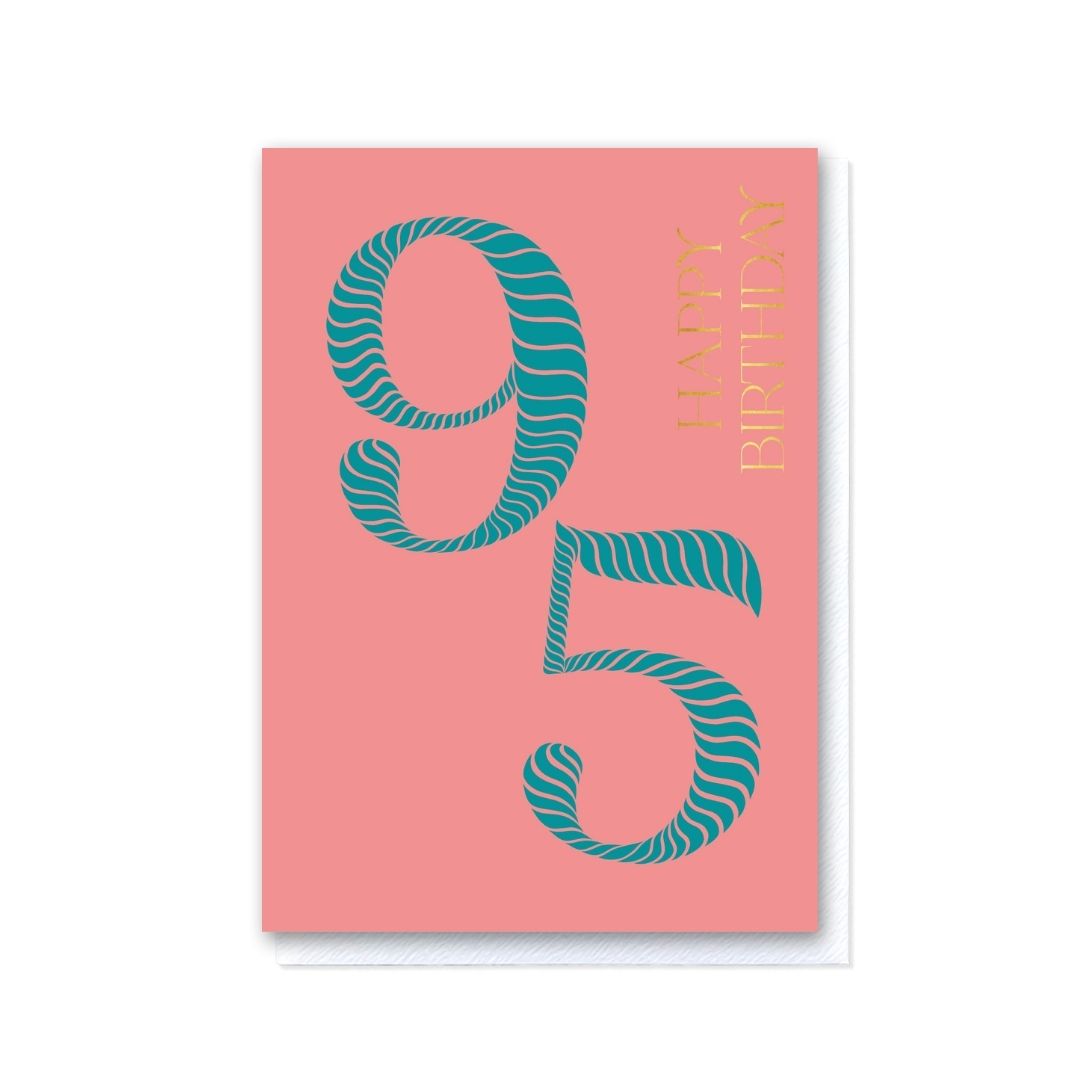 Celebrate a milestone birthday in style with our vibrant 'Birthday Stripes 95th Birthday' greeting card. Featuring a cheerful striped-number design adorned with gold foil typography, this card is the perfect way to commemorate reaching the age of ninety-five. Measuring 148x105mm, it includes a premium white envelope with a refined, tactile finish, delivering your warmest wishes with elegance.