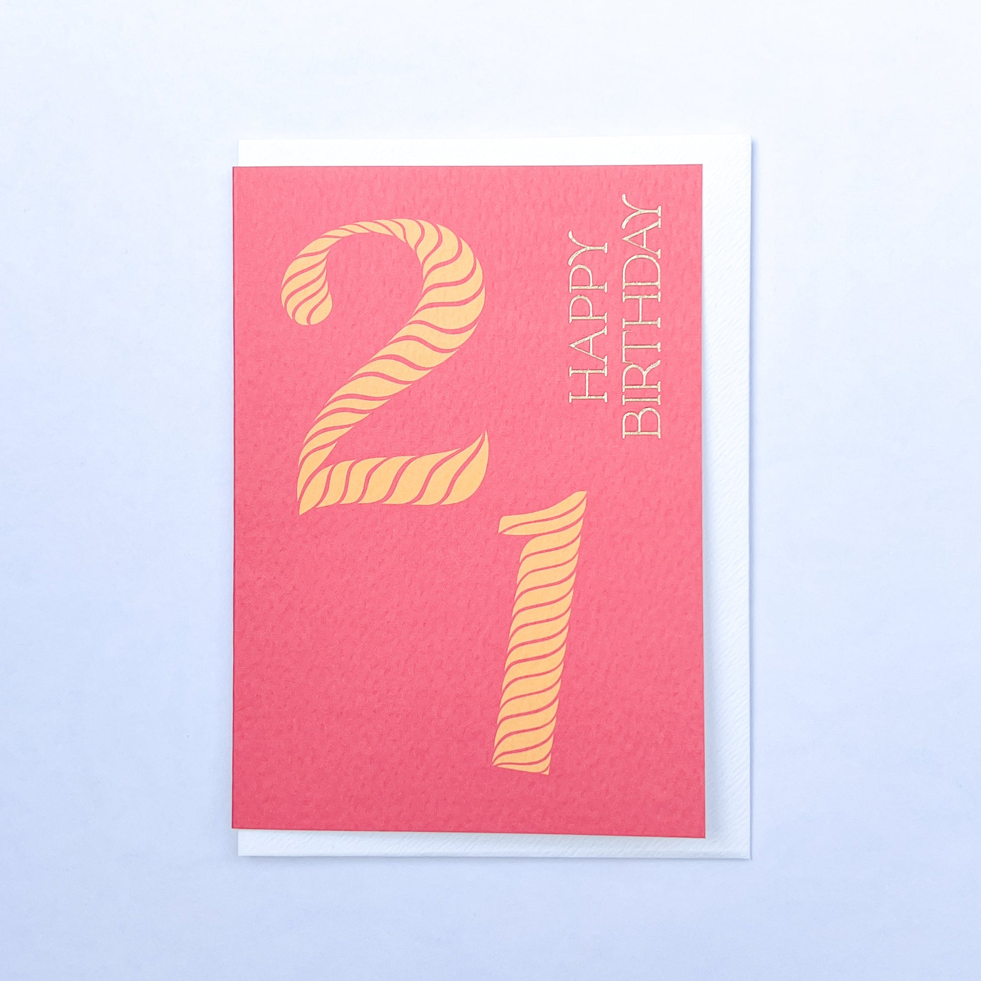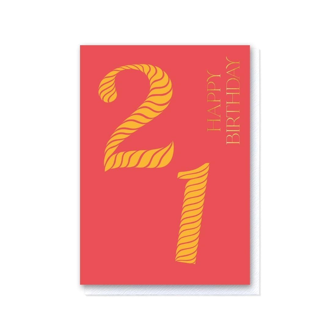 Celebrate a milestone birthday in style with our vibrant 'Birthday Stripes 21st Birthday' greeting card. Featuring a cheerful striped-number design adorned with gold foil typography, this card is the perfect way to commemorate reaching the age of twenty one. Measuring 148x105mm, it includes a premium white envelope with a refined, tactile finish, delivering your warmest wishes with elegance. Printed on high-quality, textured 300gsm white cardstock, it is both FSC Certified and sustainably sourced, ensuring eco-friendliness and recyclability. The inside is left blank for your personalised message. Proudly made and printed in the UK.