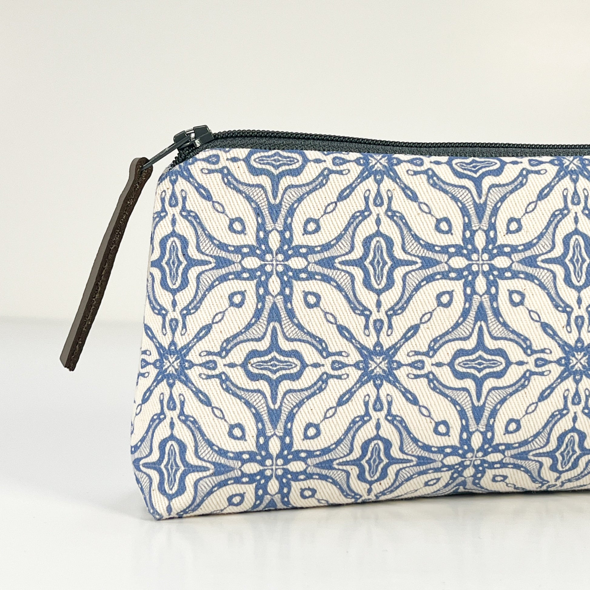 Stay organised in style with our Blue Tile Medium Pencil Case. Made from 100% cotton and sustainably handmade in Scotland, this pencil case is designed for those who appreciate both form and function. It boasts a durable YKK zip, a sophisticated leather pull, and a sleek black cotton lining. With nine vibrant colours and patterns to choose from, it’s perfect for holding more of your essentials while maintaining a chic look. Ideal for daily use or as a thoughtful gift.