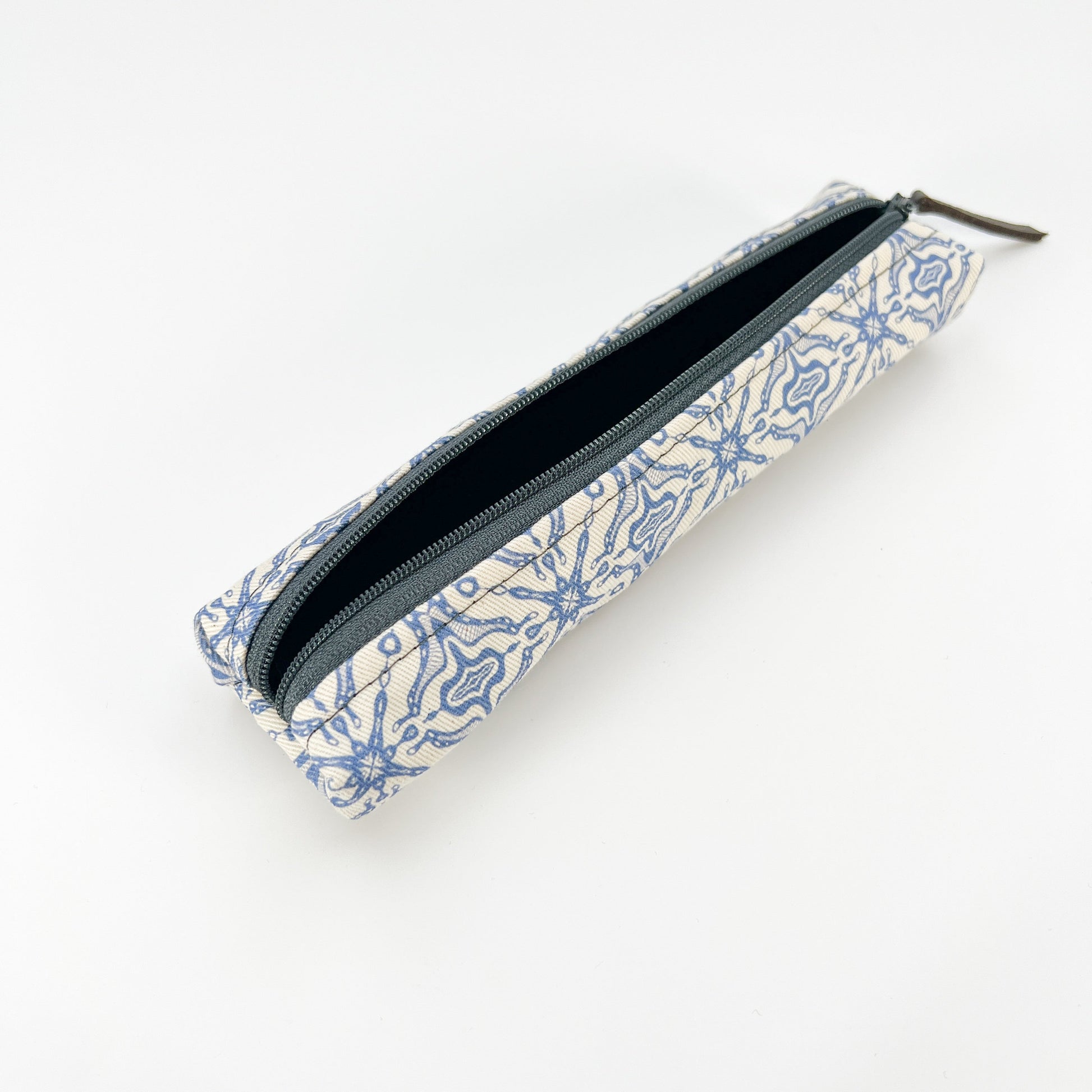 Elevate your everyday essentials with our Blue Tile Slim Pencil Case, expertly crafted from 100% sustainable cotton and handmade in Scotland. Featuring a durable YKK zip with a sleek leather pull, and lined with black cotton, this pencil case blends style and practicality. Available in nine vibrant colours and patterns, it’s perfect for organising your stationery in a compact, elegant design. Ideal for daily use or as a thoughtful gift.
