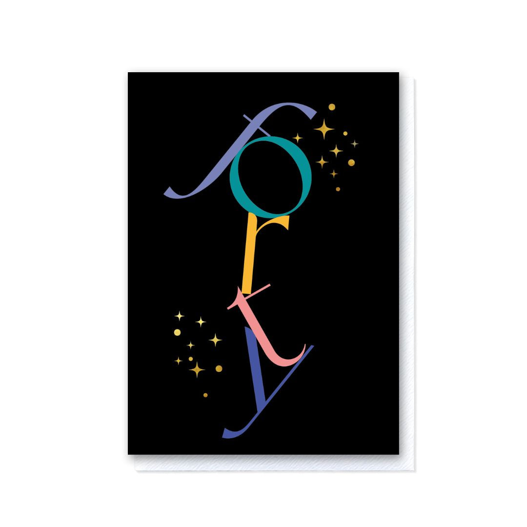 Celebrate a milestone in style with our bold and vibrant "Celebration Stacks - Forty" greeting card. Part of the dazzling Celebration Stacks range, this card features striking multi-coloured typography cascading down a sleek black background, complemented by luxurious gold hot-foiled stars for an extra touch of sparkle.