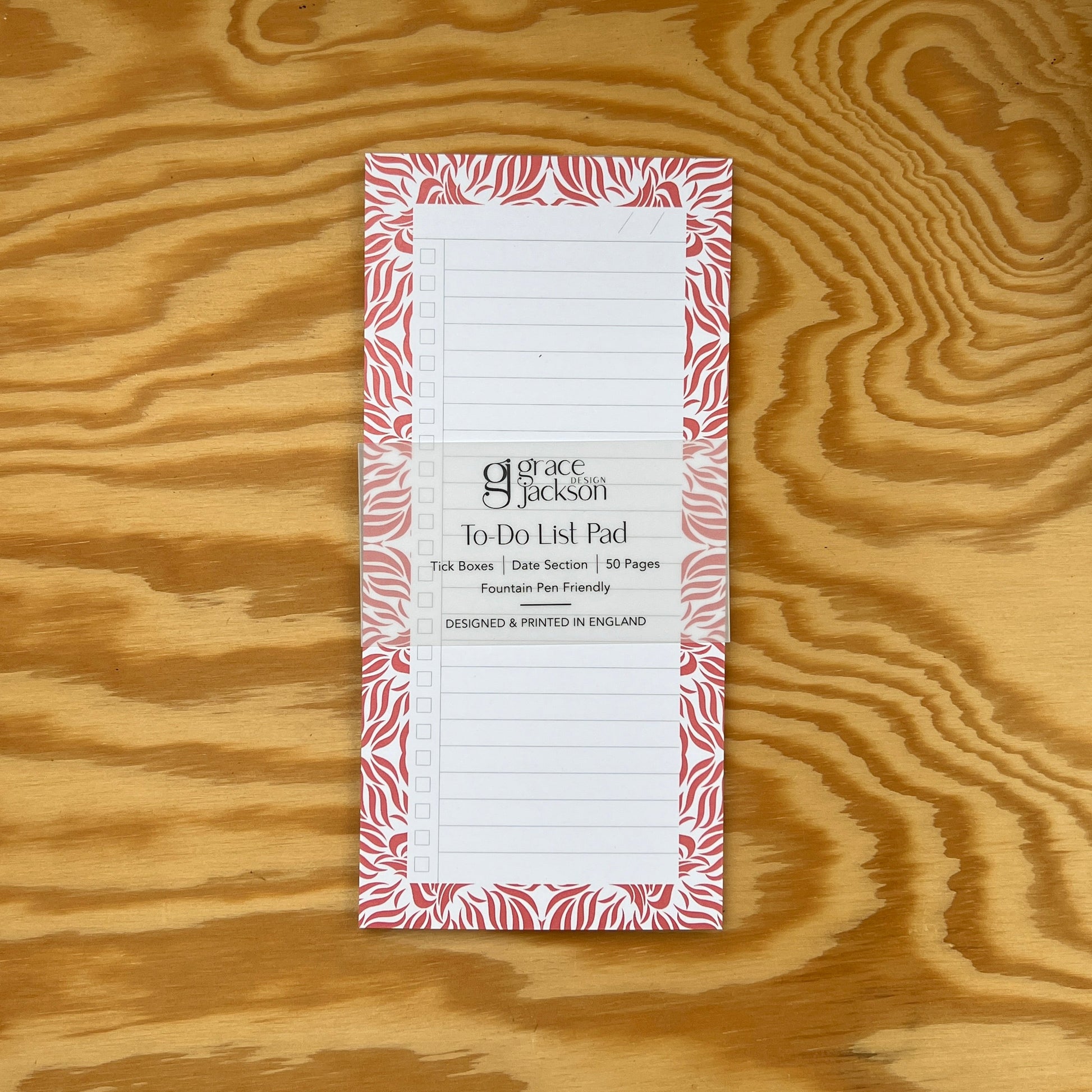 Bright and energising, the Coral Swishes Slim notepad is designed to inspire productivity with style. The slimline format makes it perfect for neat desks or handbags, while the tick boxes and date section keep your day on track. Printed on smooth, FSC Certified 100gsm paper — sustainably sourced, recyclable, and fountain pen friendly. Made and printed in the UK. Measuring 100x210mm, 50 pages.
