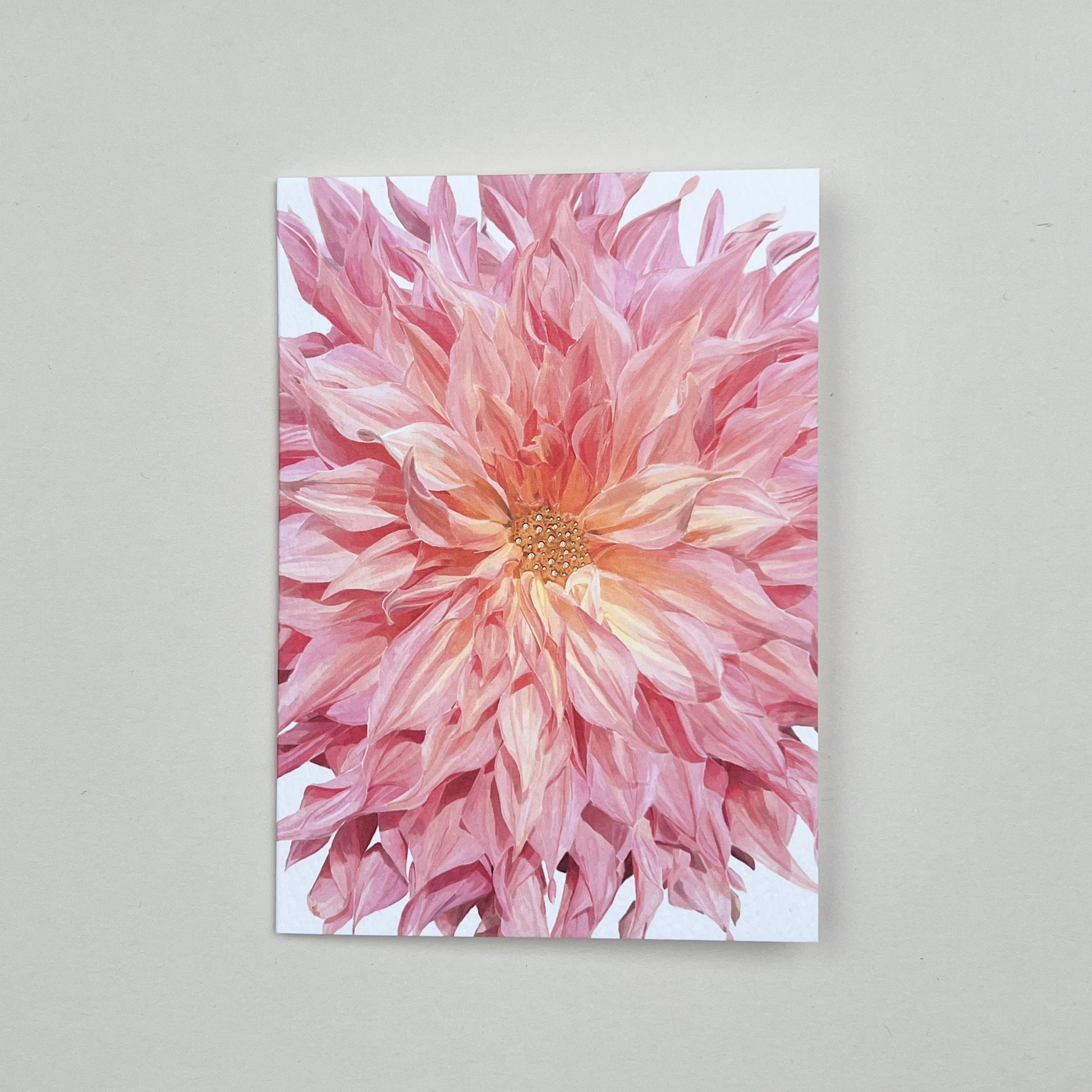 Introducing our "Dahlia" greeting card, a vibrant and delightful way to celebrate someone special whatever the occasion. Adorned with a stunning dahlia flower in full bloom, this card captures the essence of joy and celebration. Measuring 148x105mm, it includes a premium white envelope with a refined, tactile finish, delivering your warmest wishes with elegance.