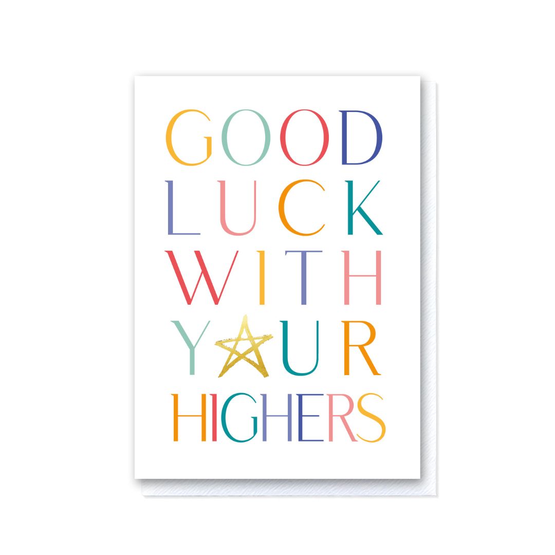 Wish someone the best of luck with their Highers exams with this vibrant and fun Good Luck with Your Highers card. The colourful typographic design and gold hot foiled star bring a positive, encouraging message to this important academic milestone.