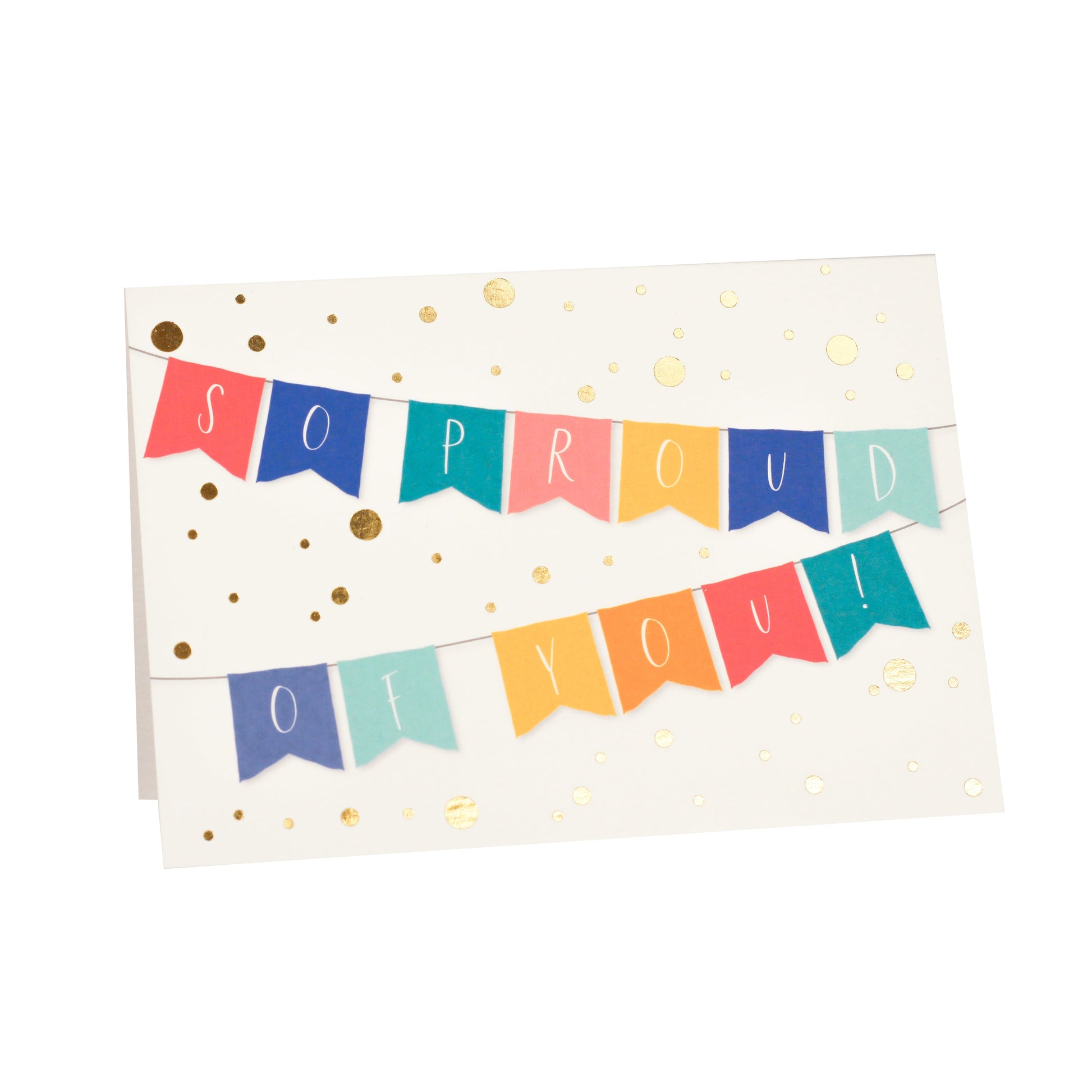 For those occasions where the only thing you can do is get the bunting out to celebrate! Each hot foil card has been printed individually on my traditional hot foil press in my Cambridgeshire Studio using premium uncoated card stock and luxurious foil. This greetings card is A6 in size and comes with a crisp white envelope with a tactile finish which oozes quality when it comes through the letterbox. Printed onto a luxurious textured 300gsm white card which is Chorine Free, FSC Certified and sustainably sourced, as well as being fully recyclable too. A6 in size (105 x 148mm | 4.1" x 5.8"). Left blank inside for your own message. Proudly made and printed in the UK.