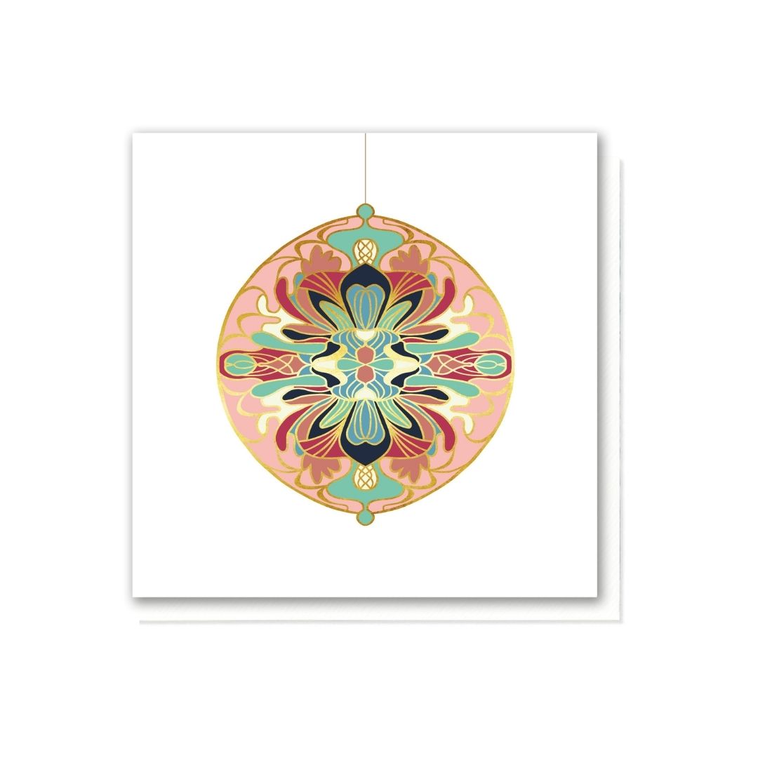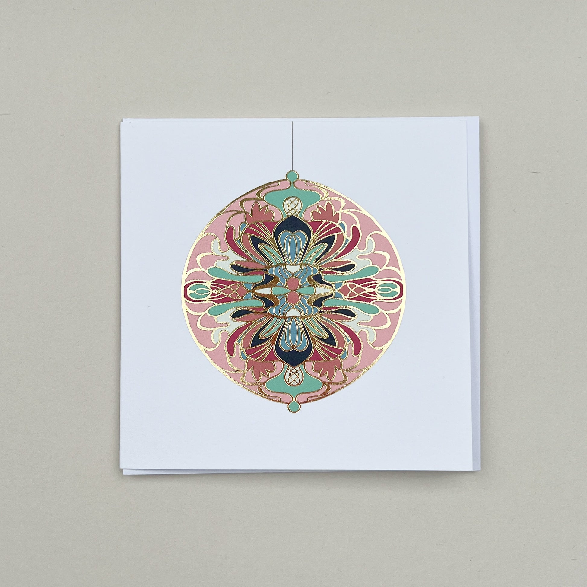 Inspired by childhood memories of enamel brooches and mirror compacts in my mother's jewellery box, these foiled baubles are all about nostalgia, intricate details all accentuated by gold foil. This greetings card is 130x130mm in size and comes with a crisp white envelope with a tactile finish which oozes quality when it comes through the letterbox. Printed onto a luxurious textured 300gsm white card which is FSC Certified and sustainably sourced, as well as being fully recyclable too. Left blank inside for your own message. Proudly made and printed in the UK.