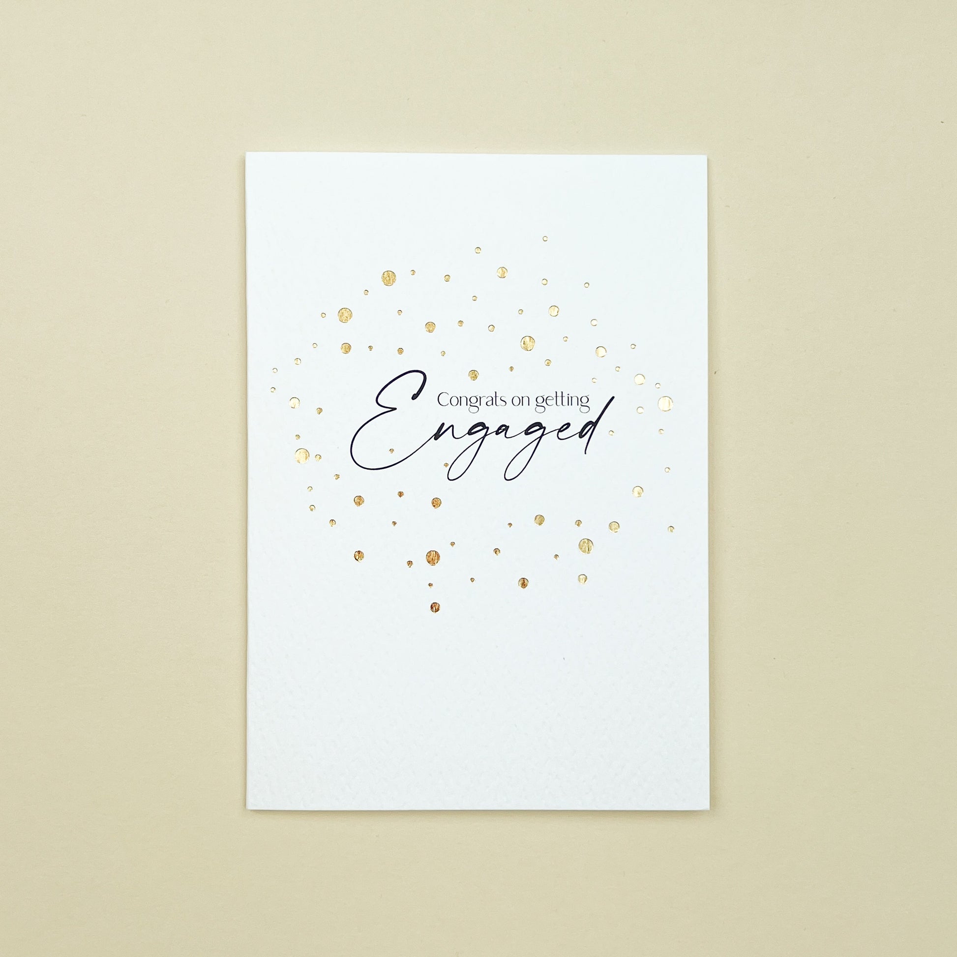Toast to the beginning of forever with our 'Congrats on Getting Engaged Gold' greeting card. Featuring a glamorous gold foil design, this card is perfect for celebrating the exciting news of an engagement. Measuring 148x105mm, it includes a premium white envelope with a refined, tactile finish, delivering your warmest wishes with elegance.