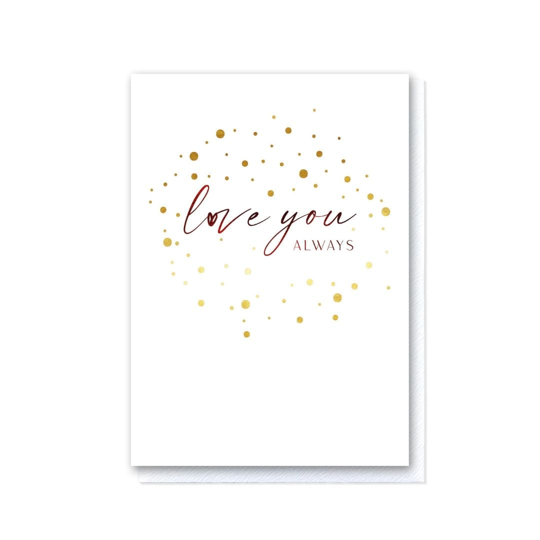 When love stands the test of time, remind your loved one of it, often. Each hot foil card has been printed individually on my traditional hot foil press in my Cambridgeshire Studio using premium uncoated card stock and luxurious foil. This greetings card is A6 in size and comes with a crisp white envelope with a tactile finish which oozes quality when it comes through the letterbox.