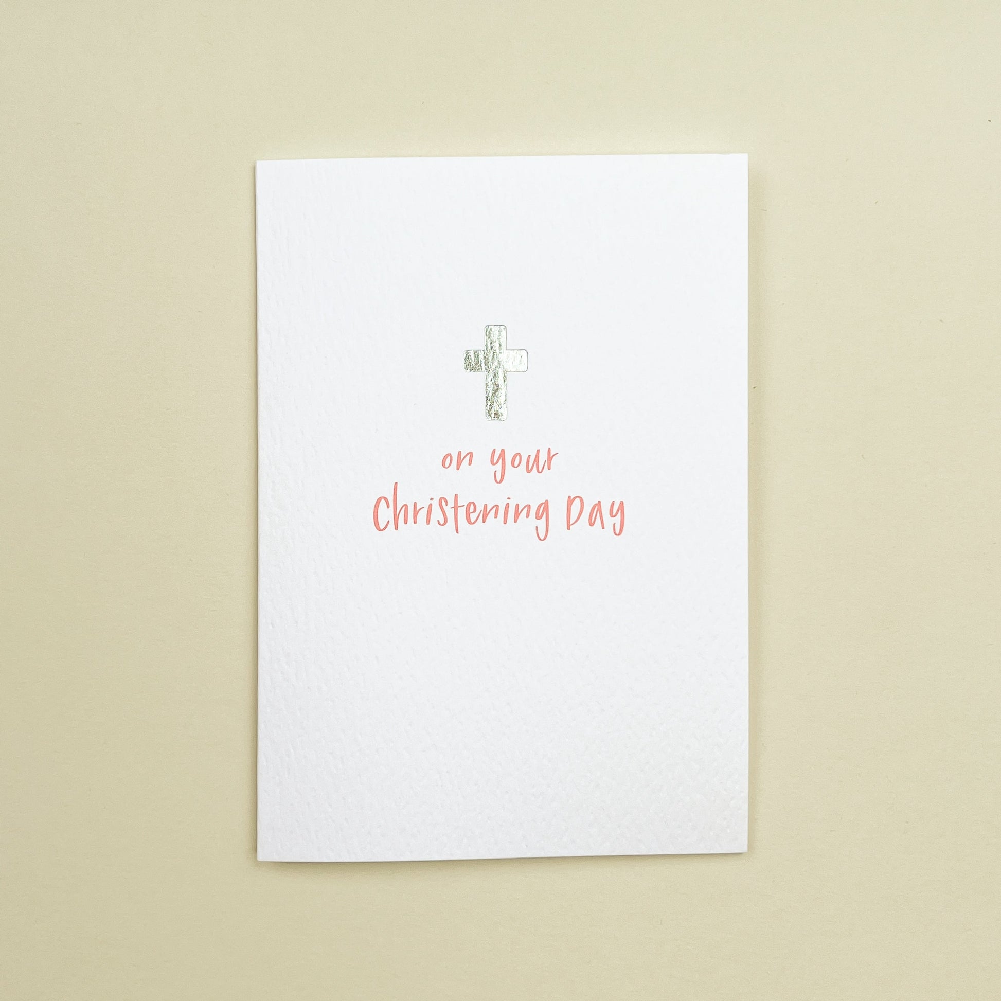 Mark a special occasion with our 'On Your Christening Day Pink' greeting card. Featuring a beautiful and elegant design in pink with a sliver foil cross, this card is perfect for celebrating a christening. Measuring 148x105mm, it comes with a premium white envelope with a refined, tactile finish that exudes elegance upon delivery.
