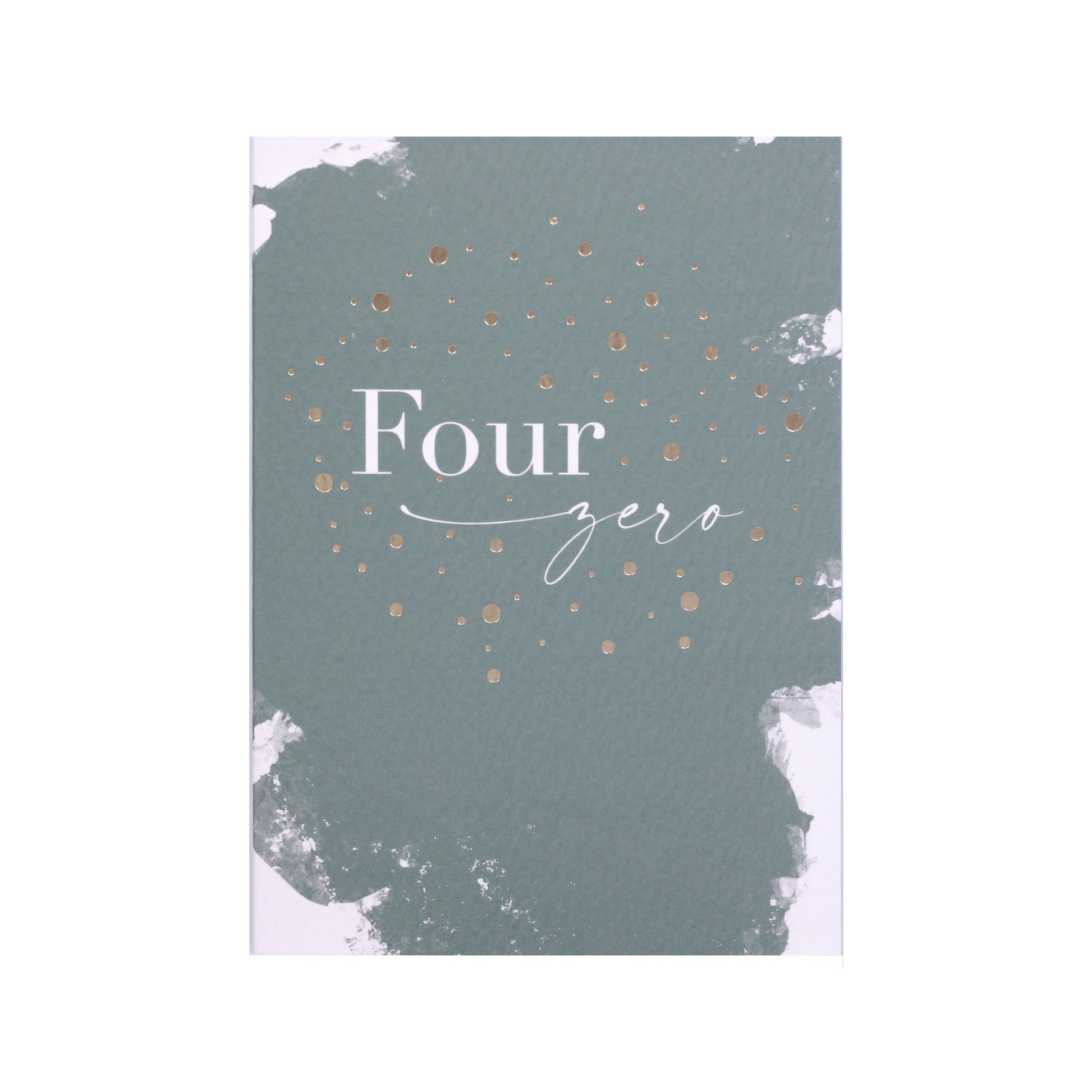 Painted Sage Green Four Zero Birthday Card in Gold Foil