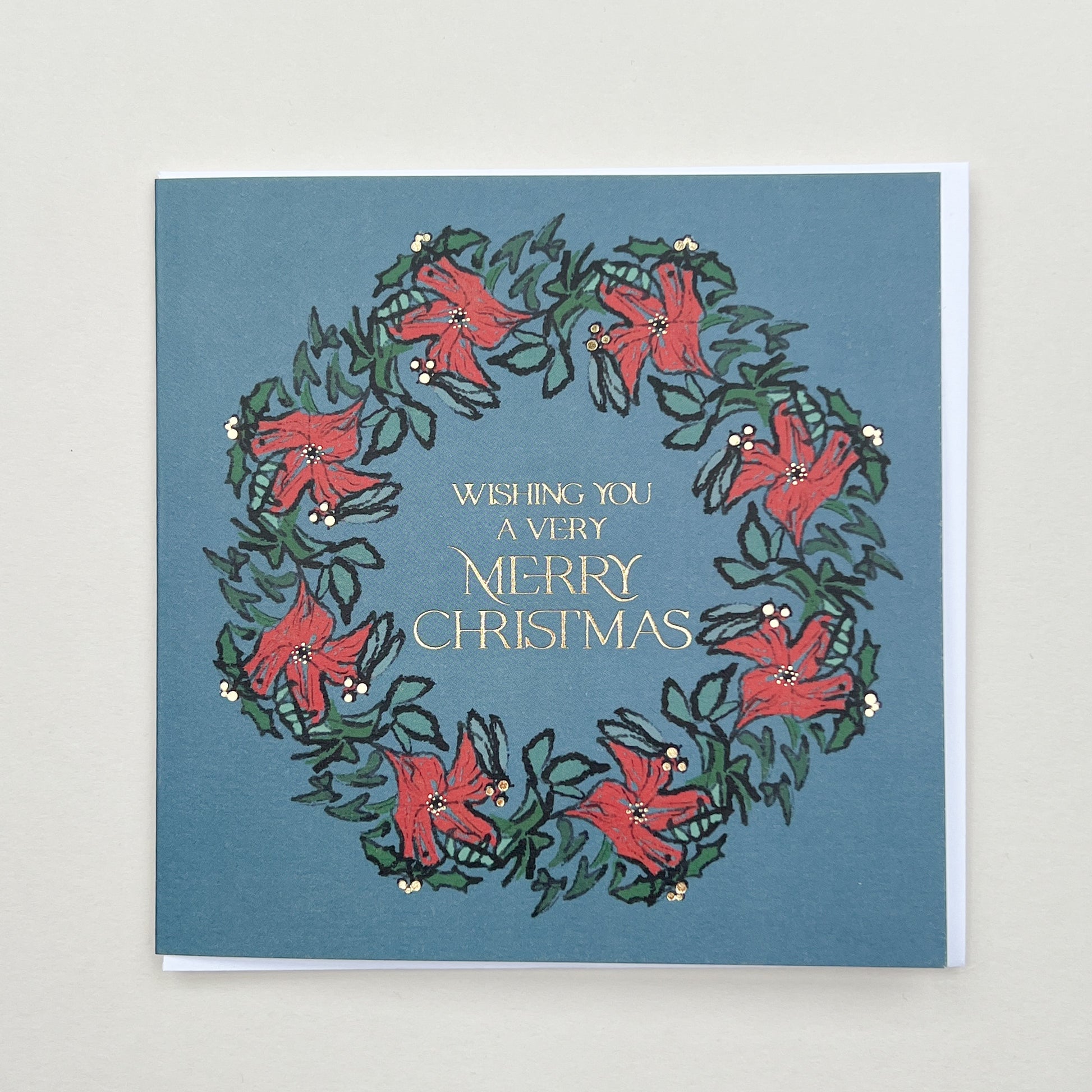 Send festive cheer with our 'Red Flower Berry Wreath' greeting card. This elegant card depicts a wreath decorated with white flowers and berries, capturing the the warmth of the holiday season. Measuring 130x130mm, it comes with a premium white envelope with a refined, tactile finish that exudes elegance upon delivery.