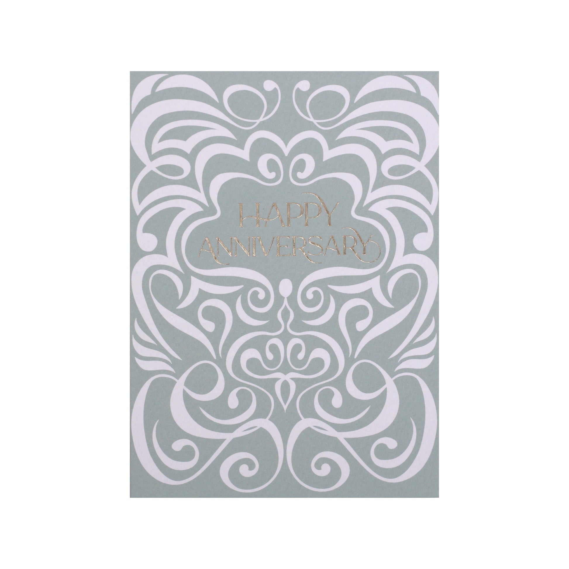 Sage Green Swirl Happy Anniversary Card in Gold Foil