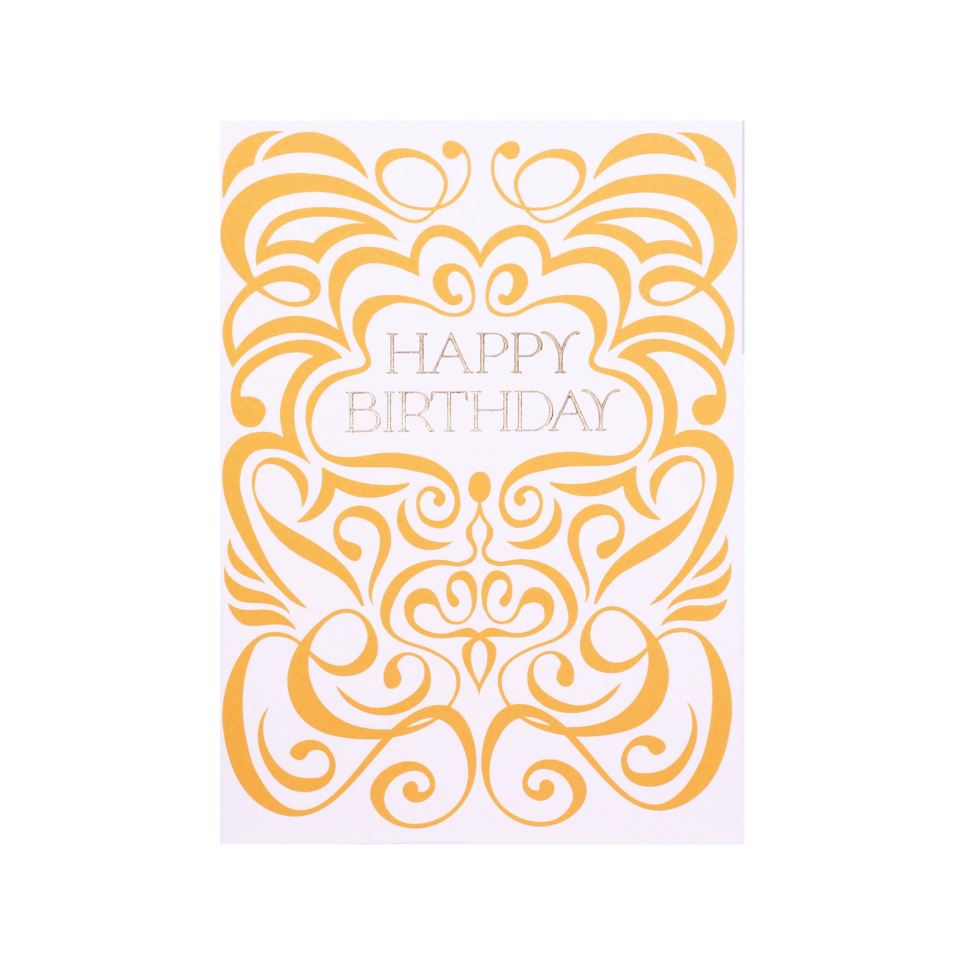 Mustard & White Swirl Happy Birthday Card in Gold Foil