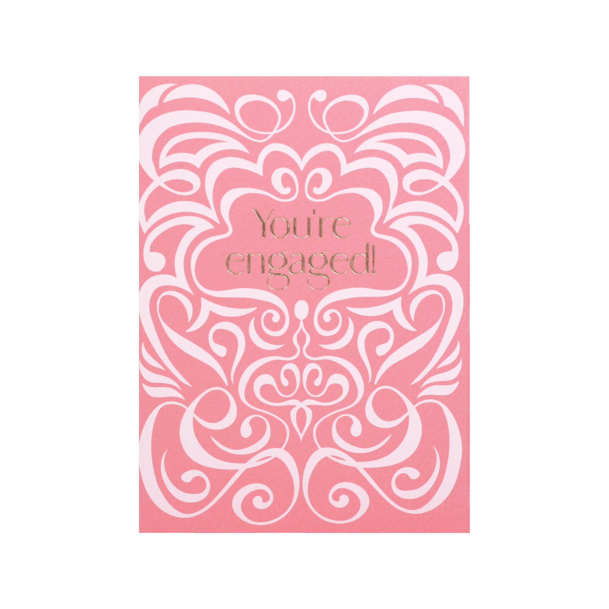 This arts and crafts-inspired two-tone coral swirl You’re Engaged Card creates a breath taking visual that captures the joy of two people committing to spend the rest of their lives together.