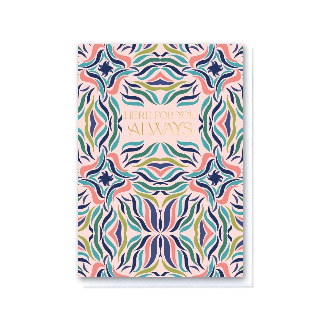 Send a little love and support with the Here for you Always card! Whether it's for a sad occasion or just to show someone you care, this card is the perfect way to let your loved one know you're thinking of them. Send a heartfelt message with this beautiful, thoughtful card and make their day even brighter. Each hot foil card has been printed individually on my traditional hot foil press in my Cambridgeshire Studio using premium uncoated card stock and luxurious foil. This greetings card is A6 in size and comes with a crisp white envelope with a tactile finish which oozes quality when it comes through the letterbox.