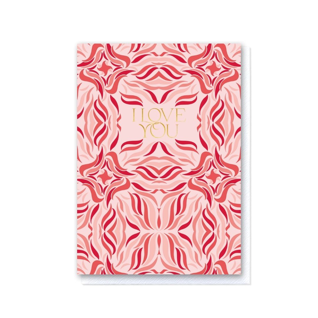 Send a little love with the I Love You card! Whether it's for a special occasion or just to show someone you care, this card is the perfect way to let your loved one know you're thinking of them. Each hot foil card has been printed individually on my traditional hot foil press in my Cambridgeshire Studio using premium uncoated card stock and luxurious foil. This greetings card is A6 in size and comes with a crisp white envelope with a tactile finish which oozes quality when it comes through the letterbox.