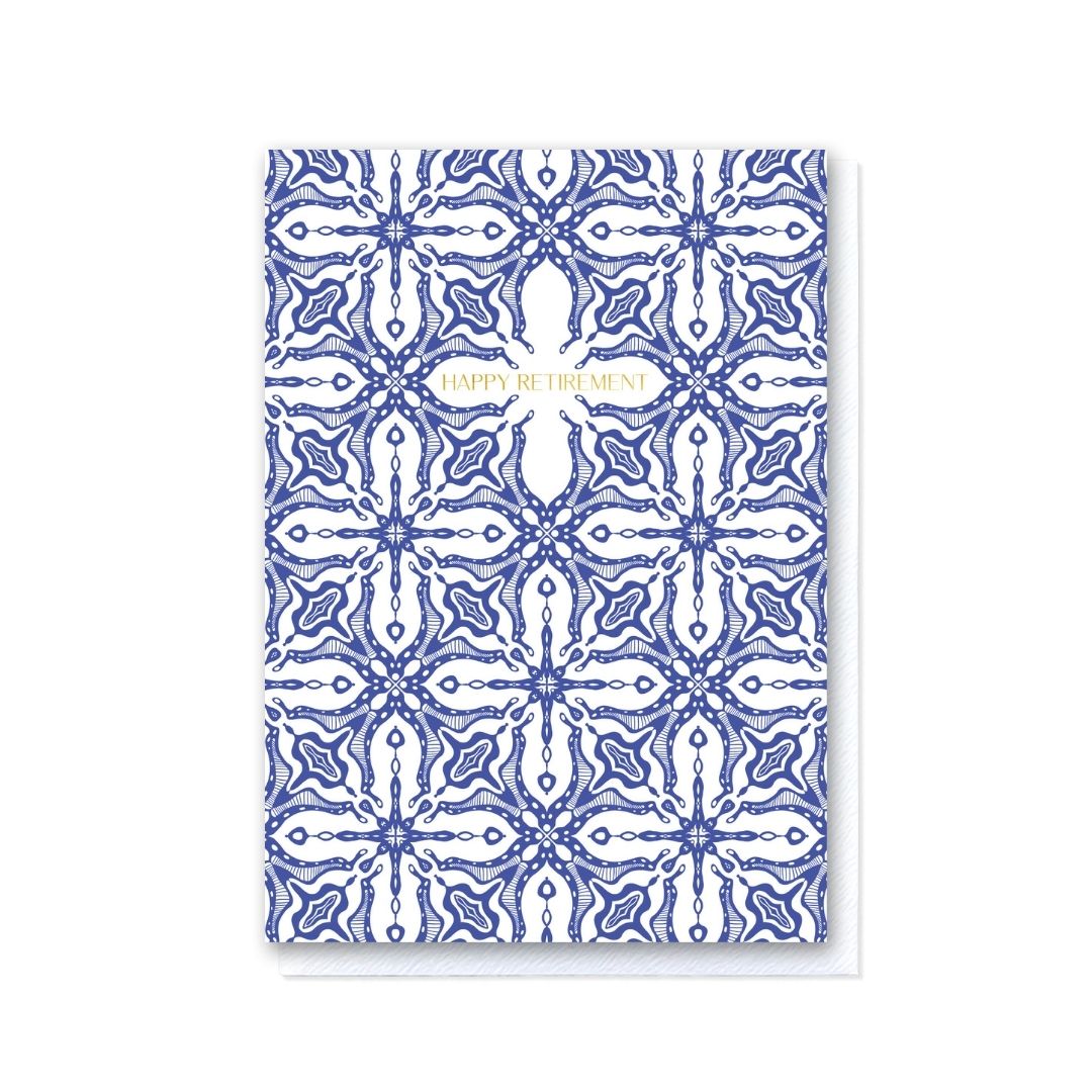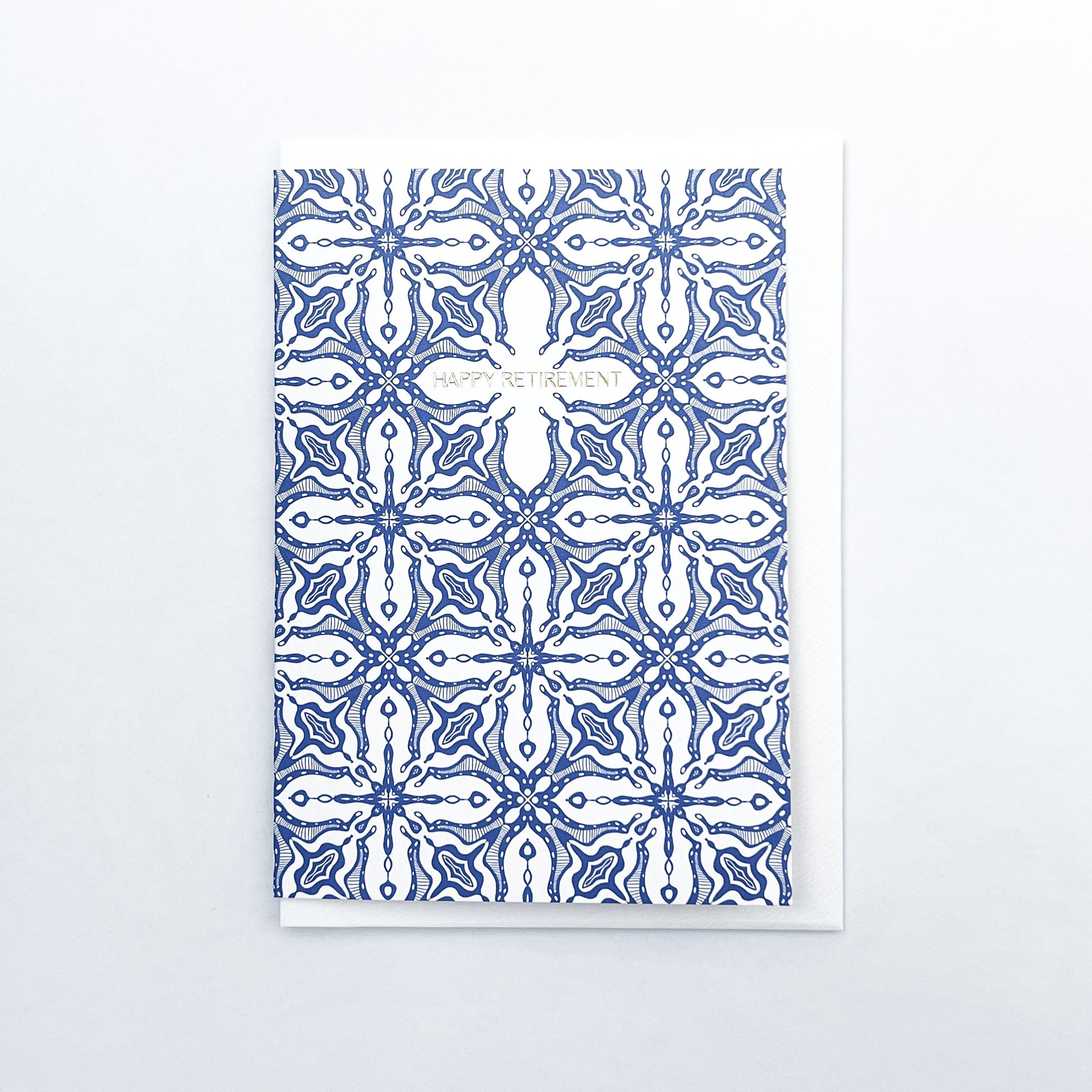 Celebrate their retirement with this stylish geometric patterned card in serene blue! From years of dedication and hard work to a new chapter of relaxation and joy, let this card convey your best wishes for their well-deserved retirement. Each hot foil card is meticulously printed on my traditional hot foil press in my Cambridgeshire Studio using premium uncoated card stock and luxurious foil. This greetings card is A6 in size and comes with a crisp white envelope with a tactile finish, making it a special treat to receive.